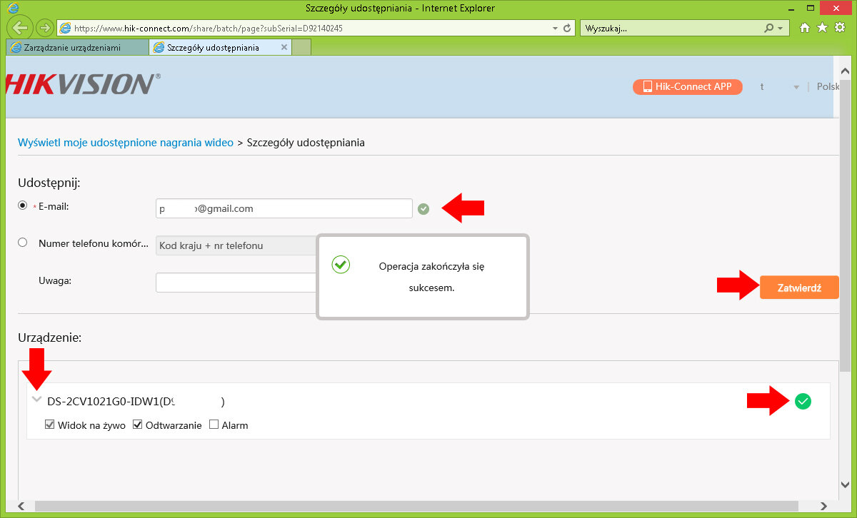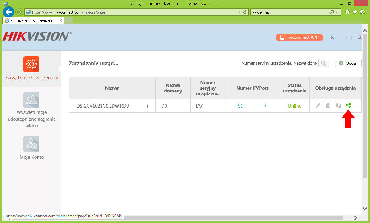 Sdílení zobrazení zařízení prostřednictvím platformy Hik-Connect na adrese www.hik-connect.com.