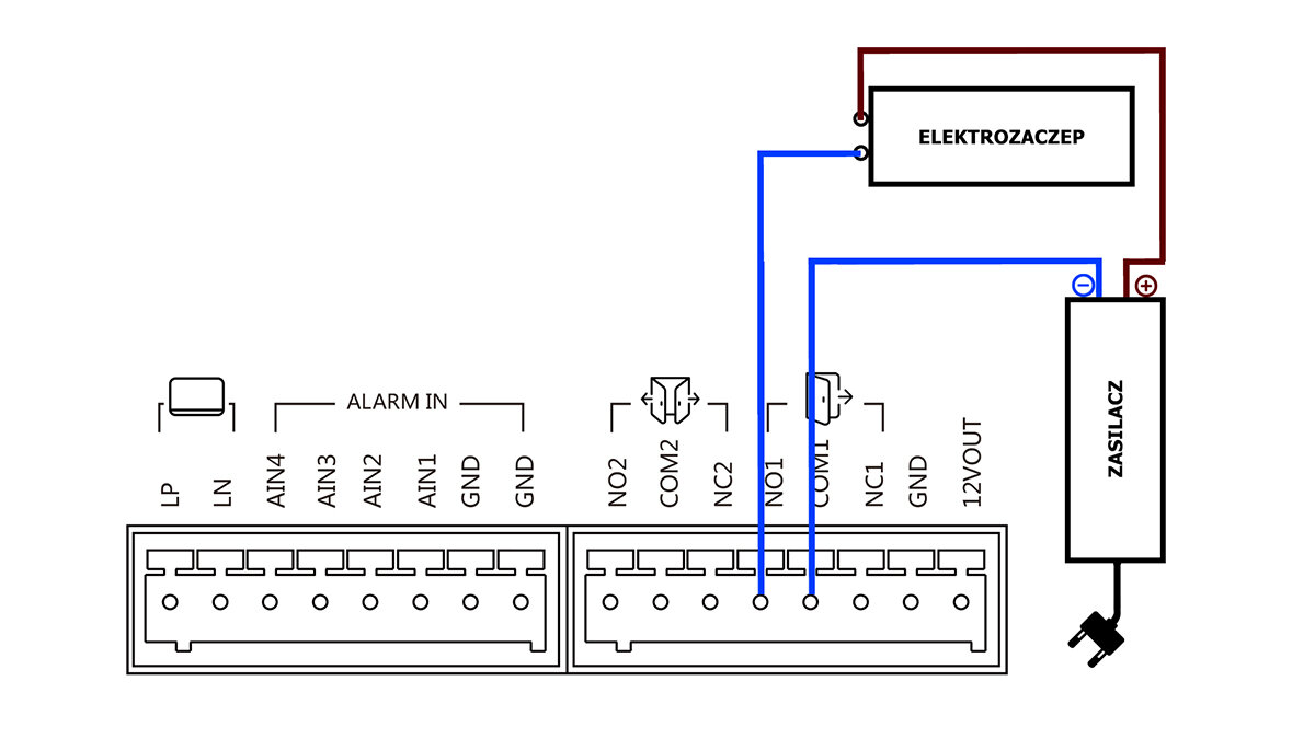 Připojení elektrického otvírače dveří pro videovrátný systém DS-KIS202, DS-KIS101-P, DS-KIS603-P, DS-KIS604-S, DS-KIS703-P Hikvision