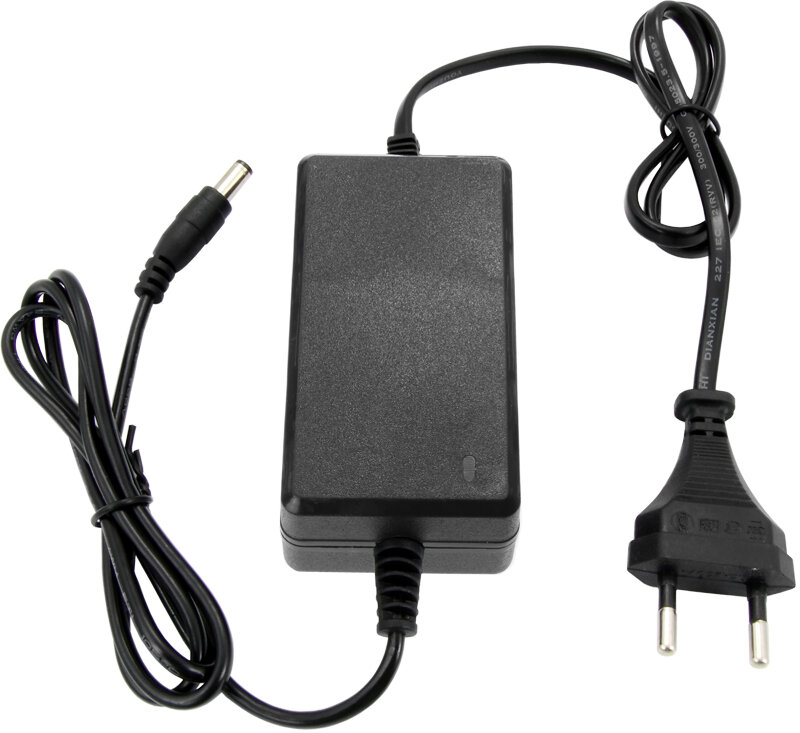 Napájecí zdroj s konektorem 2.1./5.5 (polarita "+" uprostřed) určený pro použití se zařízeními napájenými stejnosměrným proudem 12V a maximálním odběrem proudu 2A. Napájecí kabel je součástí dodávky.