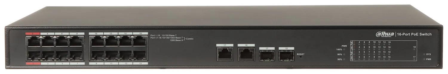 Průmyslový PoE switch S4101-16ET2GF-240-C 16portový SFP Dahua