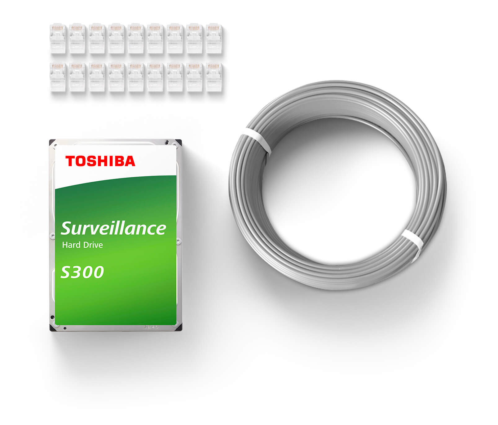 - 1x pevný disk Toshiba S300 1TB z řady Surveillance, určený pro řešení CCTV.