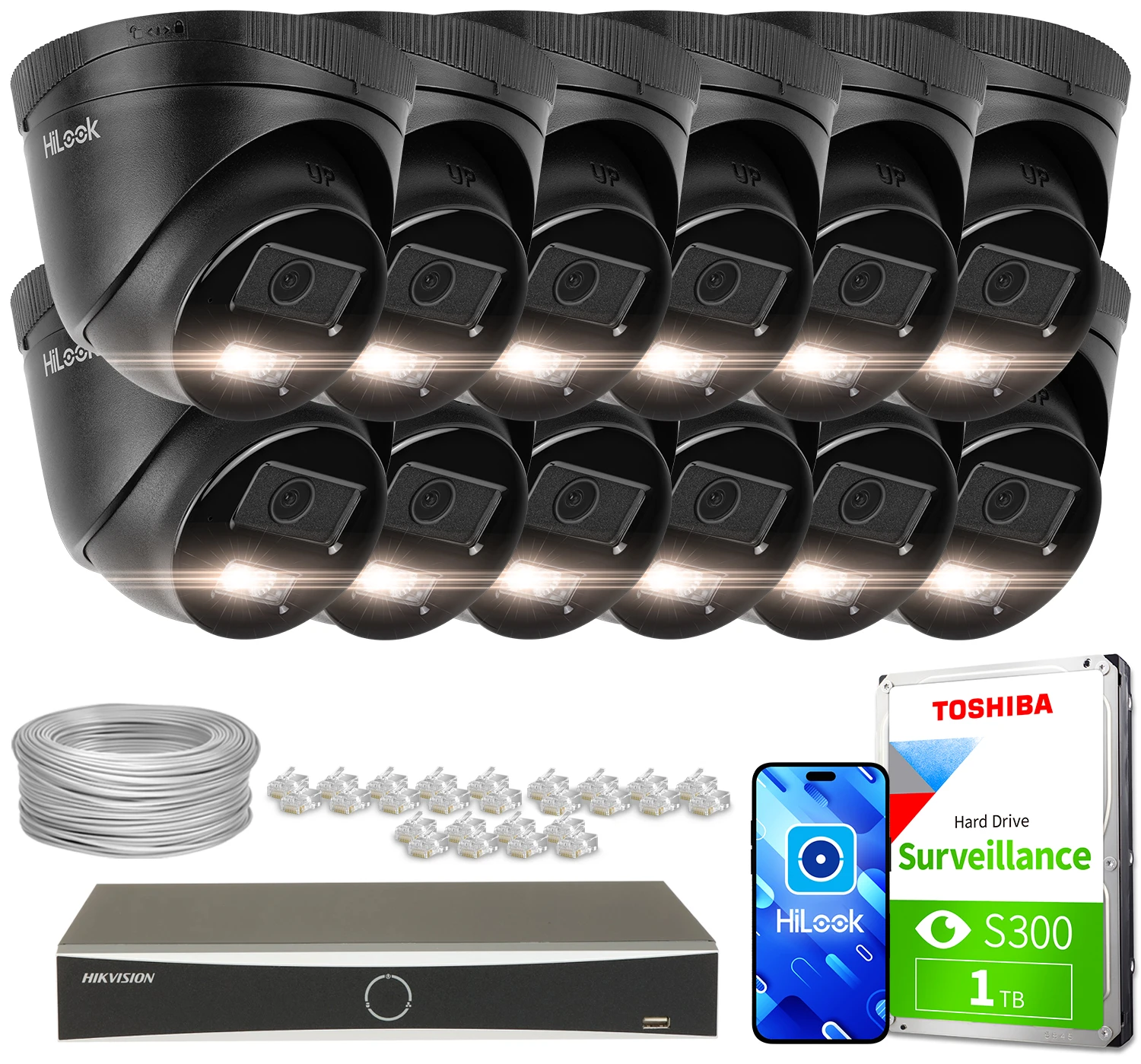 Sada pro monitorování 12x IPCAM-T4-30DL DS-7616NXI-K2/16P(D) Černá 4Mpx Dual-Light 30m HiLook od Hikvision
