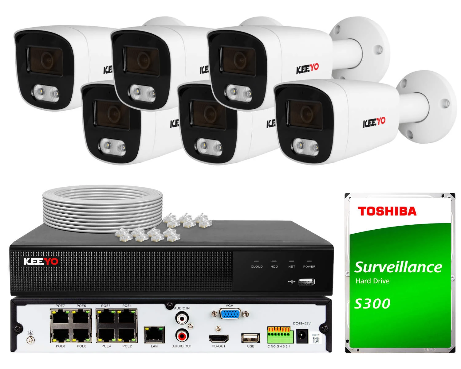 Sada pro monitorování KEEYO 6x LV-V-IP5M25TF-DL 5Mpx, hybridní osvětlení IR/LED