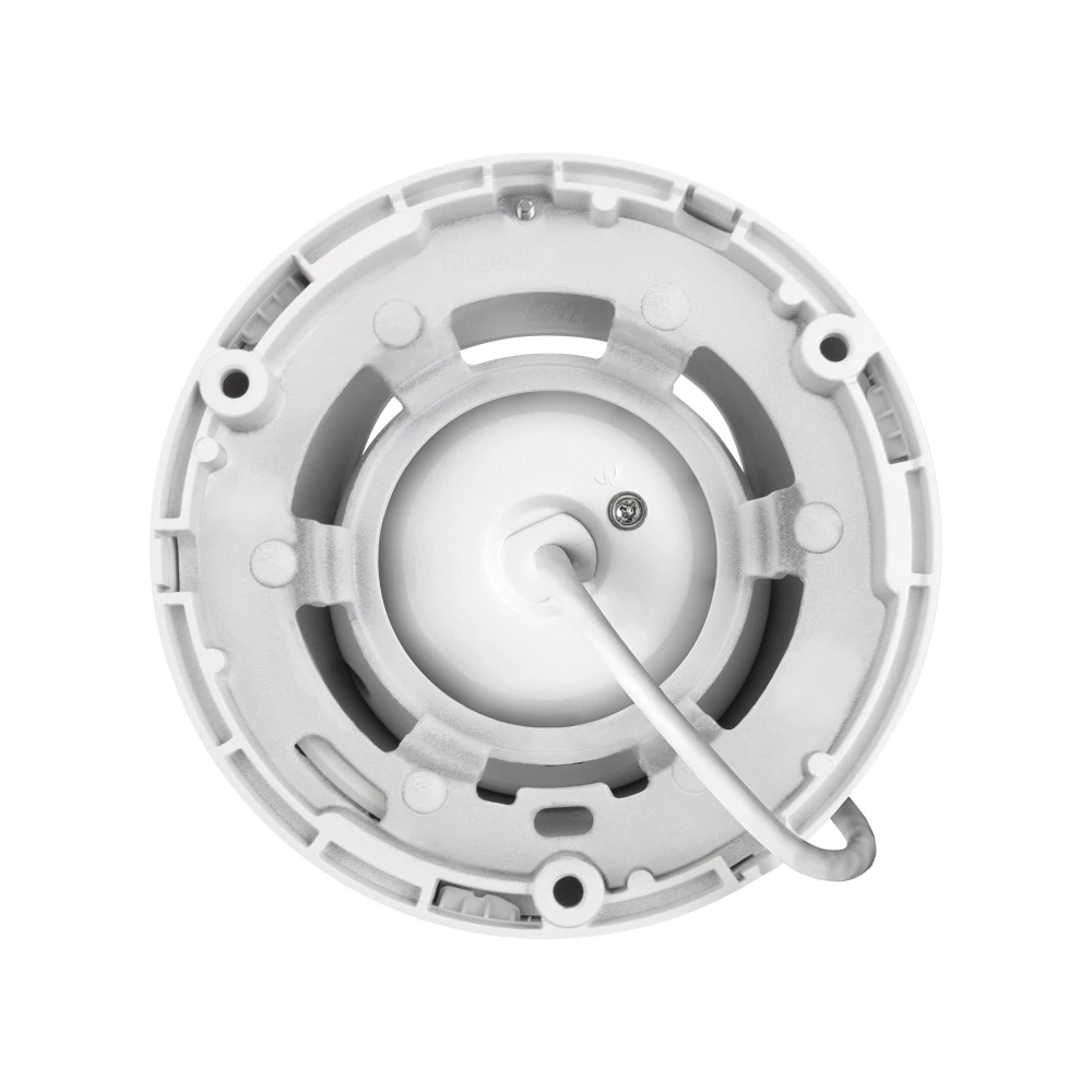 Zdjęcie przedstawia biały, okrągły uchwyt montażowy kamery z widocznym przewodem wychodzącym z jego środka. Uchwyt posiada kilka otworów montażowych rozmieszczonych równomiernie na obwodzie.