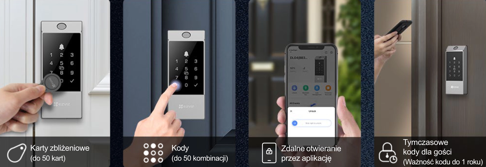 - Vzdálené odemykání prostřednictvím aplikace EZVIZ