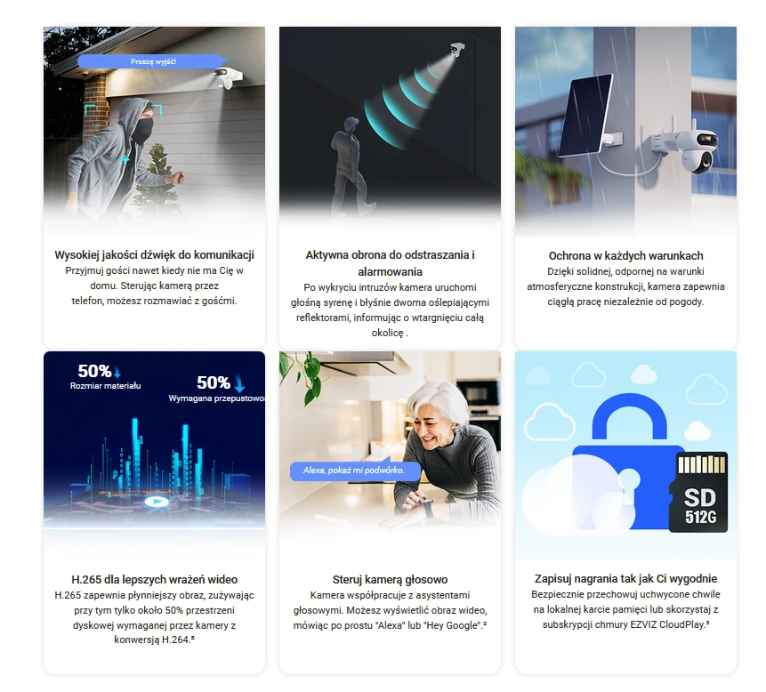- Podpora karty microSD (až 512 GB) a cloudového úložiště EZVIZ CloudPlay