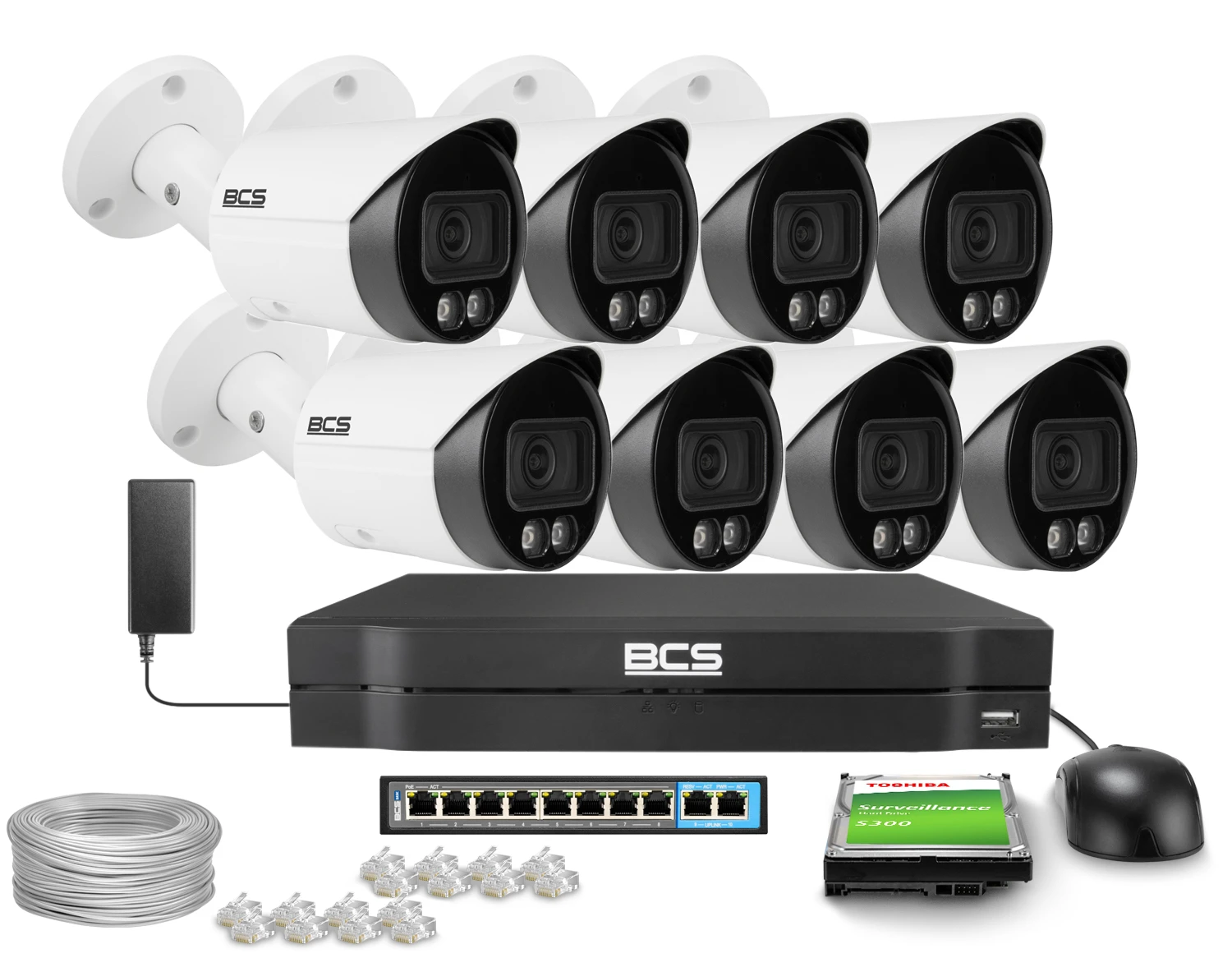 Sada pro monitoring 8x BCS-L-TIP15FCR3L3-AI1 5Mpx, 2,8 mm, 0,007Lux BCS