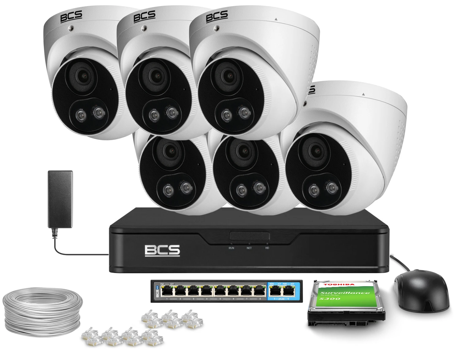 Sada pro IP monitoring 6x BCS-P-EIP28FSR3L2-AI2 8Mpx, WDR 120dB, Detekce lidí a vozidel, IR30m